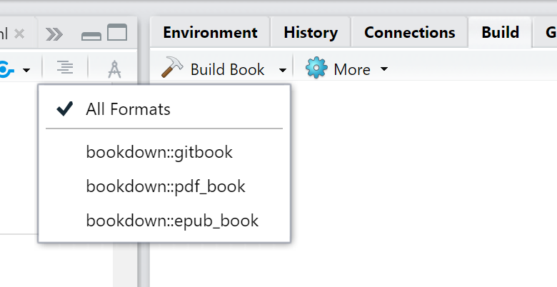 4 When building the book. Here you may choose to build one or all formats. From the Build Book button, click on the drop-down arrow and select your preferred format.