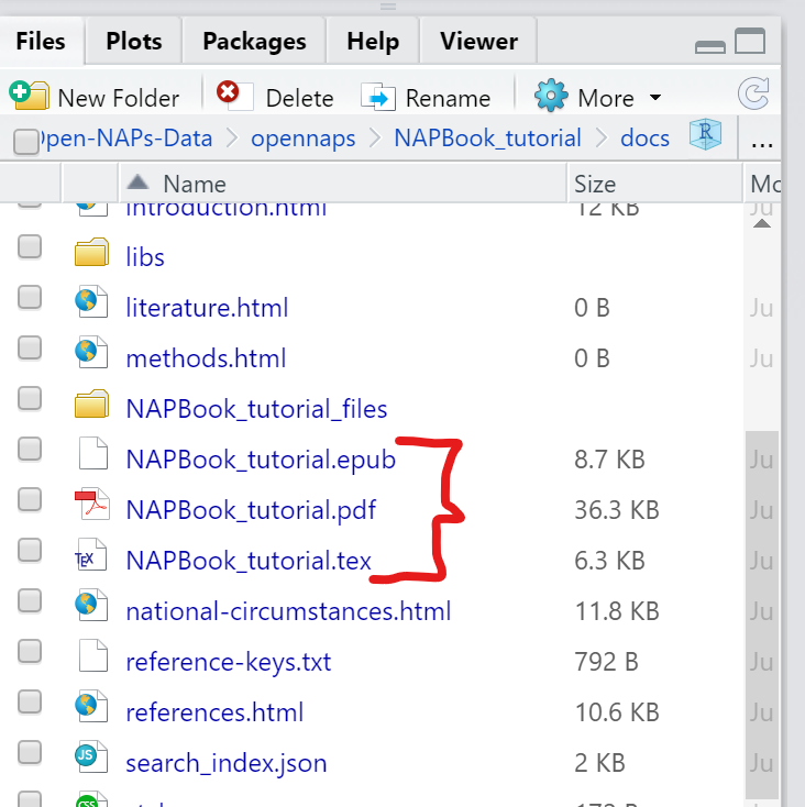 - From our output.yml file, you will notice that we have 3 output options for our file; gitbook, pdf and epub. This is the default. You may select the most preferred output type by deleting the other/unwanted formats or leave this as default and choose a single output format when building the book. Since we left the default 3 options, when we rendered the book, it was compiled in .tex/gitbook, pdf and epub. This can be accessed from the ‘docs’ folder.